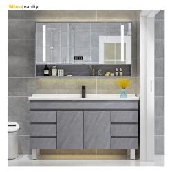Gray Bathroom Vanity with Faucet Basin and Mirror