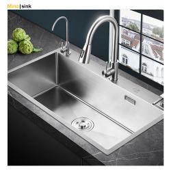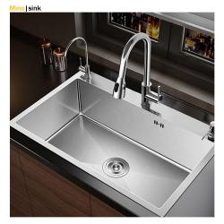 Free Design Curved Kitchen Single Bowl Sink with Double Faucet