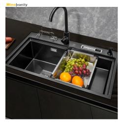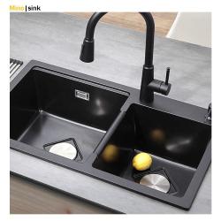 China Wholesale Curved Black Kitchen Single Bowl Sink with Double Faucet and Tray