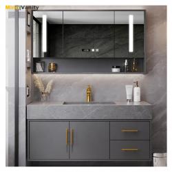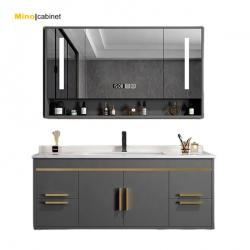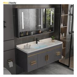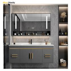 Gray Bathroom Vanity with Faucet Basin and Mirror