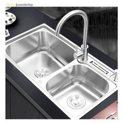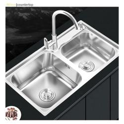 Manufacture Wholesale Two Bowls Stainless Steel Kitchen Sink with Tray